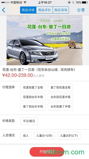 拼车出行服务:提供数十条热门拼车线路,如台北-花莲、花莲-台东-垦丁等,让您的跨城市移动更加经济便捷。