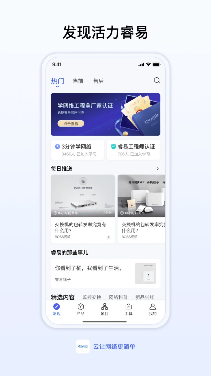 睿易家最新版本带来了革命性的网络管理体验,作为易网络方案中的核心组件,它集成了最前沿的无线技术。通过智能算法自动优化网络部署方案,大幅简化了中小型场景的无线网络搭建流程。新版本特别强化了远程运维能力,内置专业级WiFi知识库,让用户能够轻松应对各种网络挑战。无论是新店开业还是办公室网络升级,都能通过睿易家实现快速部署和高效管理。