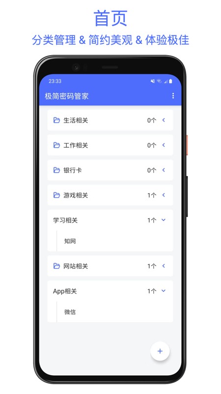极简密码管家最突出的特点是其强大的分类管理功能,您可以轻松添加和管理各类账号密码;直观的分类界面让您能快速找到所需信息;复制账号密码快速登录的功能更是大大提升了使用效率。这款软件的功能设计处处为用户着想,真正做到了智能与便捷的完美结合。