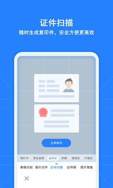 安全扫描王Pro是一款免费且安全的智能扫描应用,支持OCR拍照识别、证件扫描、老旧照片修复等多种功能。用户只需通过手机拍照或上传照片,即可快速完成扫描,并可根据需要添加水印,防止文件被滥用。该应用在文字识别方面表现出色,不仅能准确提取文字内容,还能识别表格结构,方便用户整理数据。此外,证件照拍摄功能支持多种尺寸规格,用户可自由调整背景颜色,省去跑照相馆的麻烦。