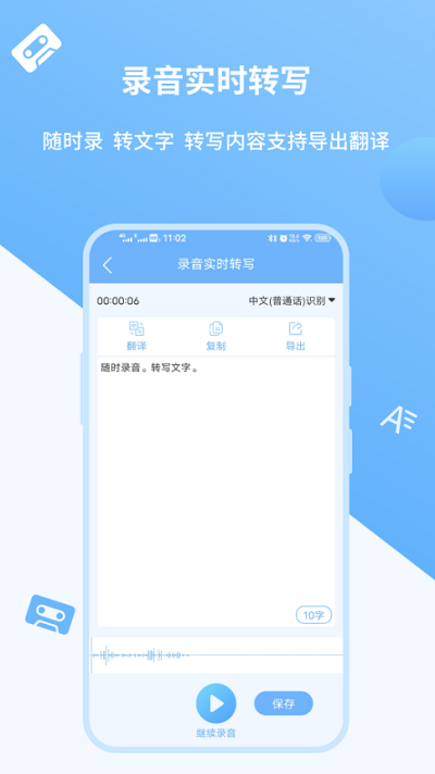 进行录音转文字,旨在帮助用户整理录音内容,方便进行内容查看,转换速度快,准确率高达98%;