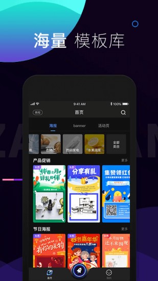 丰富的模板库:涵盖海报、名片、社交媒体配图等各类场景模板,每日更新紧跟潮流趋势。