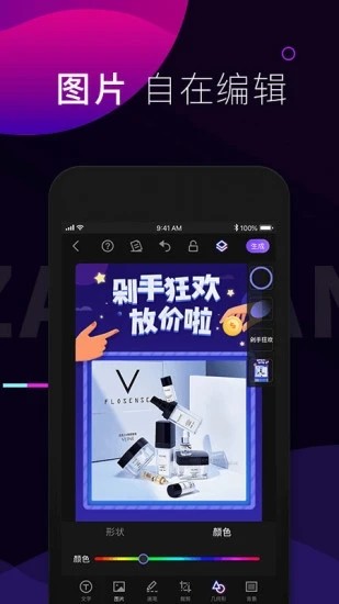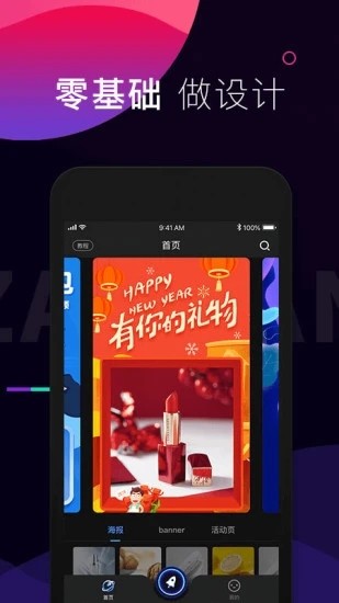 零基础搞设计:无需专业背景,简单拖拽即可完成精美设计作品,内置智能引导系统让新手也能快速上手。