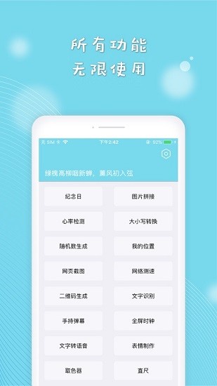 cerulean集成了超过50种实用工具,涵盖生活、工作、学习等各个方面。所有功能均可无限次使用,无需任何额外付费。其中包括实用的网络测速、心率检测、BMI计算器、日期计算、汇率换算等工具,以及创意十足的图片处理功能,如表情包制作、文字识别、图片九宫格、图片拼接、图片打码和添加水印等。
