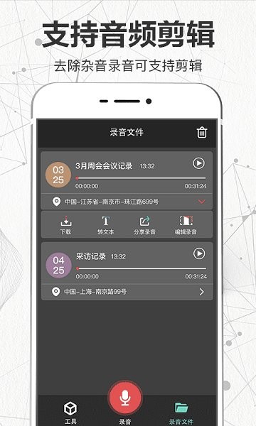 录音转文字:采用先进的语音识别技术,一键即可将录音转换为精准文字,识别率高,操作简单;