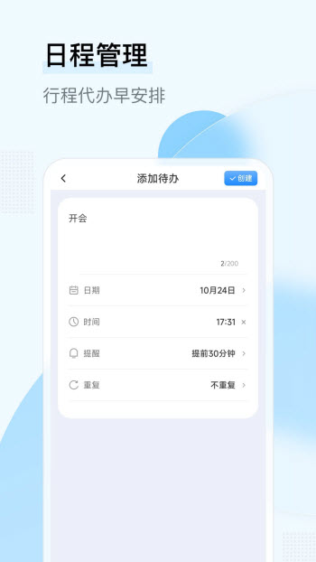 智能日程管理:软件提供强大的日程管理功能,用户可以轻松添加、编辑和查看自己的日程。此外,用户可以在特定时间和日期设置提醒,以确保他们不会错过任何重要事件,让他们的生活更有条理。同时,软件还支持多设备同步,用户可以在不同终端查看和管理日程,随时随地掌握自己的时间安排。