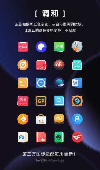 -主题版《洪》已支MIUI12、Flyme9、Coloros、Emui11,请不要反馈这4个平台的系统app图标,主题版效果会更好。我们持续优化适配算法,确保在不同系统版本上都能呈现最佳视觉效果。