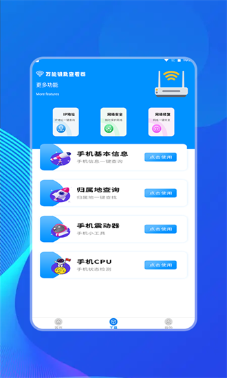 检查网络的速度,并根据所检测到的数据,帮助您在家中迅速找到和调试网络环境。测试结果显示直观明了,即使是普通用户也能轻松理解。可以在此共享最新信息,许多都是有关怎样迅速提高网络速度的内容。社区功能让用户可以交流使用心得,获取专业网络优化技巧。一键查询网络详情和信号检测,以及ip地址查询和手机号码归属地查询。新增的设备识别功能,能详细显示每个接入设备的品牌和型号信息。
