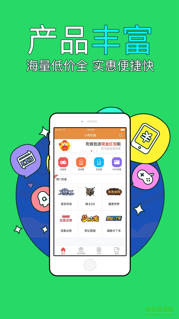 充值产品:涵盖各类游戏点券、话费充值、流量包、视频会员等数字产品,满足你的全方位需求。