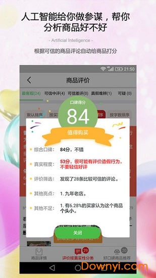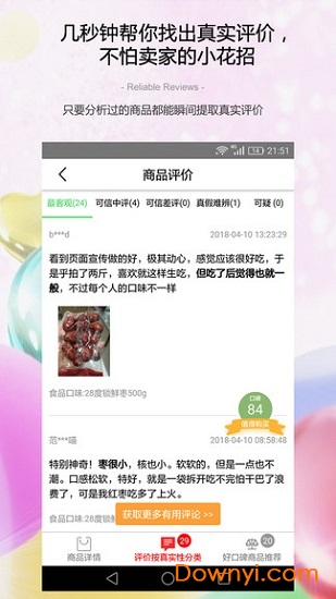 【迅速找到真实可信的商品评论】应用内置强大的数据库和智能分析引擎,能够实时扫描并分析海量商品评价。系统会重点关注包含商品缺点描述的中差评,这些评价往往更具参考价值。目前支持淘宝、天猫等主流电商平台,未来还将陆续接入更多购物网站,为用户提供更全面的服务。