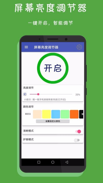 手机屏幕亮度调节器官方版是一款专业且贴心的手机屏幕亮度管理工具,致力于为用户提供最舒适的视觉体验。这款软件能够根据周围环境光线智能调节屏幕亮度,有效减少眼睛疲劳,保护用户视力健康。无论您是在强光下使用手机,还是在夜间阅读,它都能为您提供恰到好处的屏幕亮度,让您的眼睛始终处于最舒适的状态。如果您正在寻找一款专业的护眼工具,这款软件绝对是您的最佳选择,赶快下载体验吧!