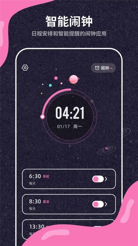 -智能闹钟:根据您的睡眠周期智能选择最佳唤醒时间,让您每天都能神清气爽地醒来。