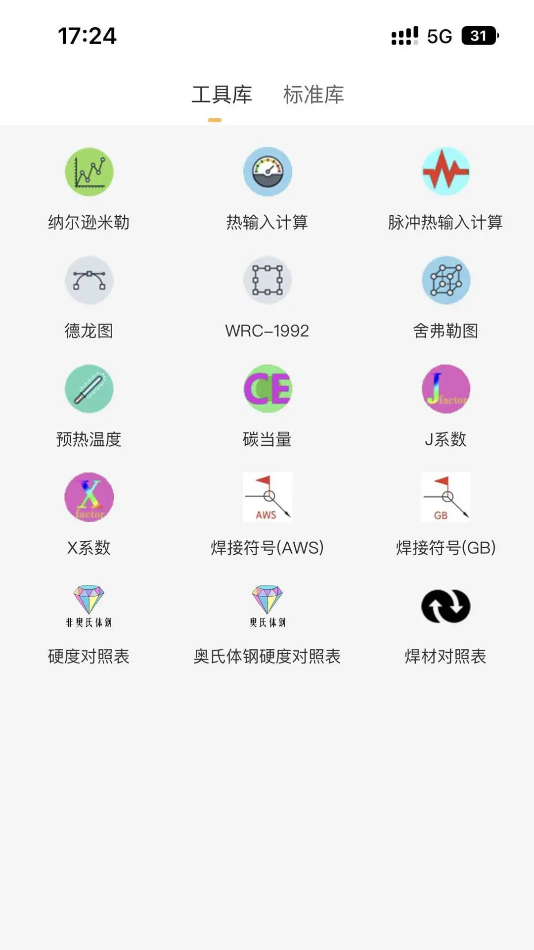 焊接小工具:包括了计算焊材定额/焊接热输入计算工具/不锈钢金相的德龙图和WRC-1992/舍弗勒图/预热温度/硬度对照表/焊接符号,以及在金属计算J系数和X系数工具,计算之后,可生成Excel表格,并下载。
