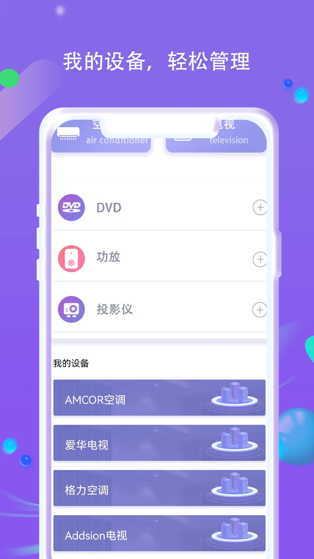 一部手机替代多个遥控器,节省空间,方便管理。