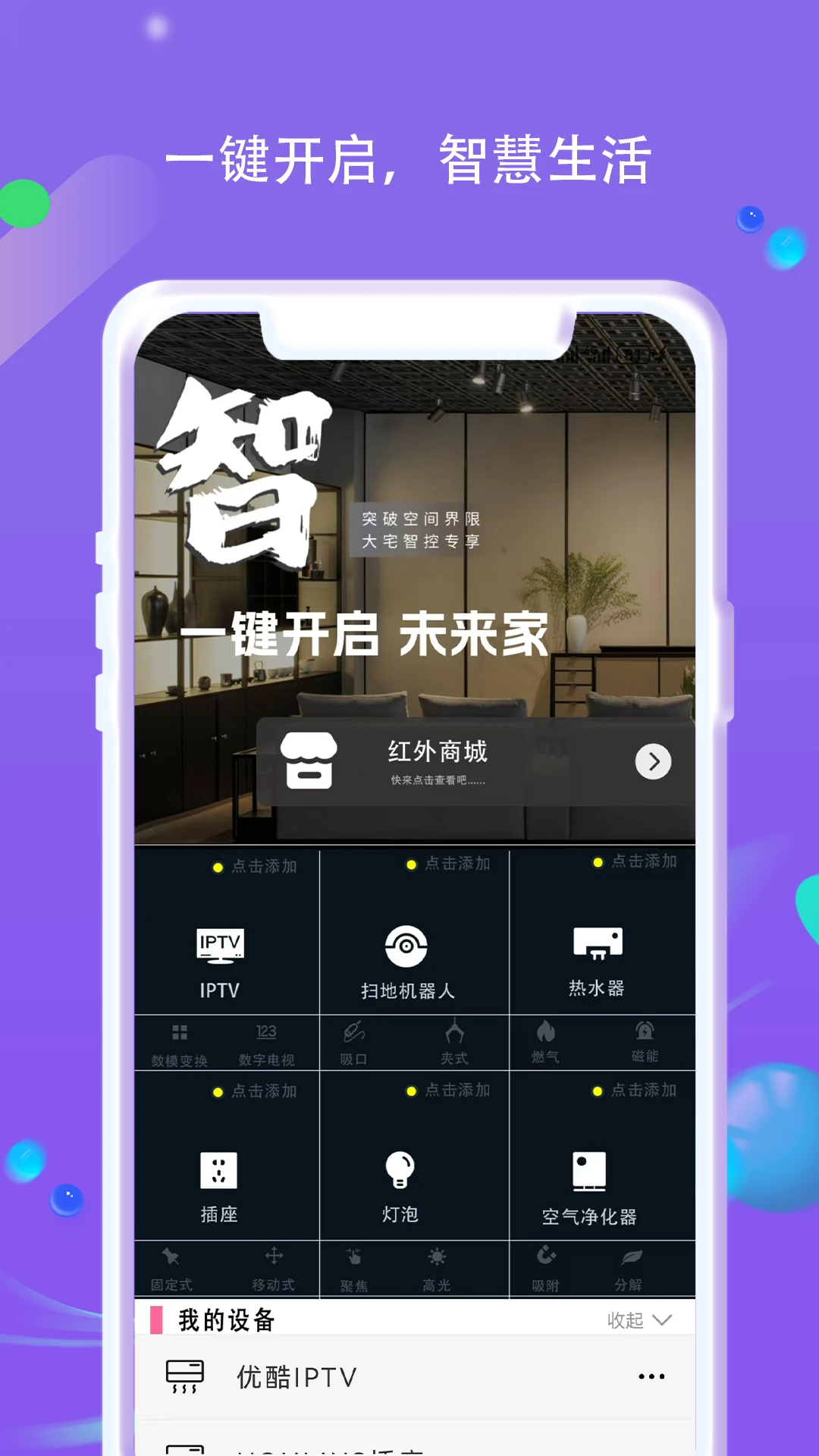 支持红外设备遥控,兼容多种家电类型。