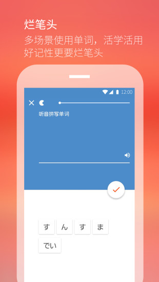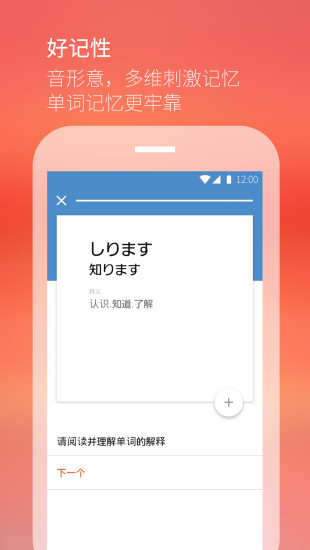 知识讲解、单词背诵、练习测试、总结复习、实战口语演练等等一系列完备的日语学习功能,带着你一步一个脚印的学好日语。特别添加的AI语音评测功能可以实时纠正发音,帮助用户练就地道日语口语。