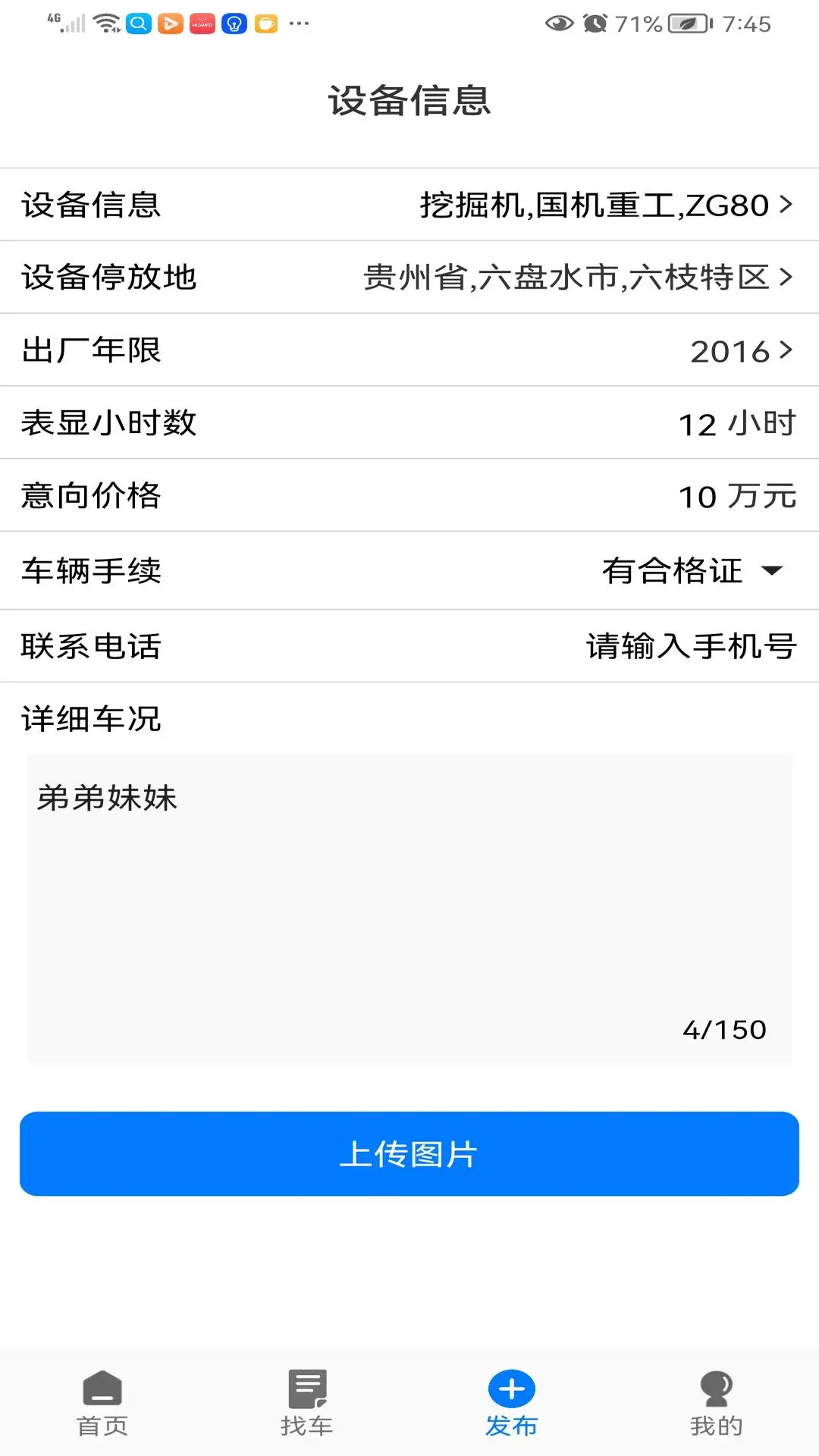 设备信息发布:用户可以通过app发布二手工程机械的详细信息,包括型号、使用年限、价格等。
