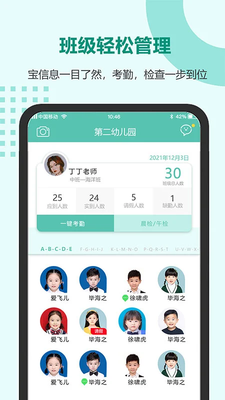 园丁模块:提供幼儿考勤管理功能,支持晨检和午检记录,方便教师日常管理。