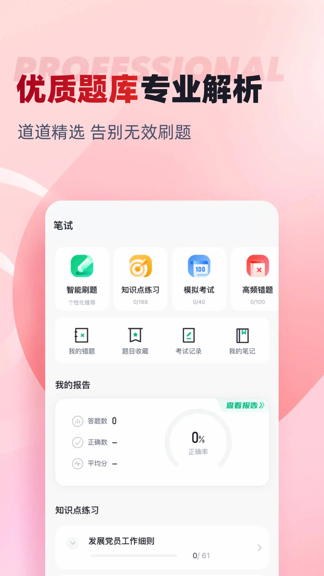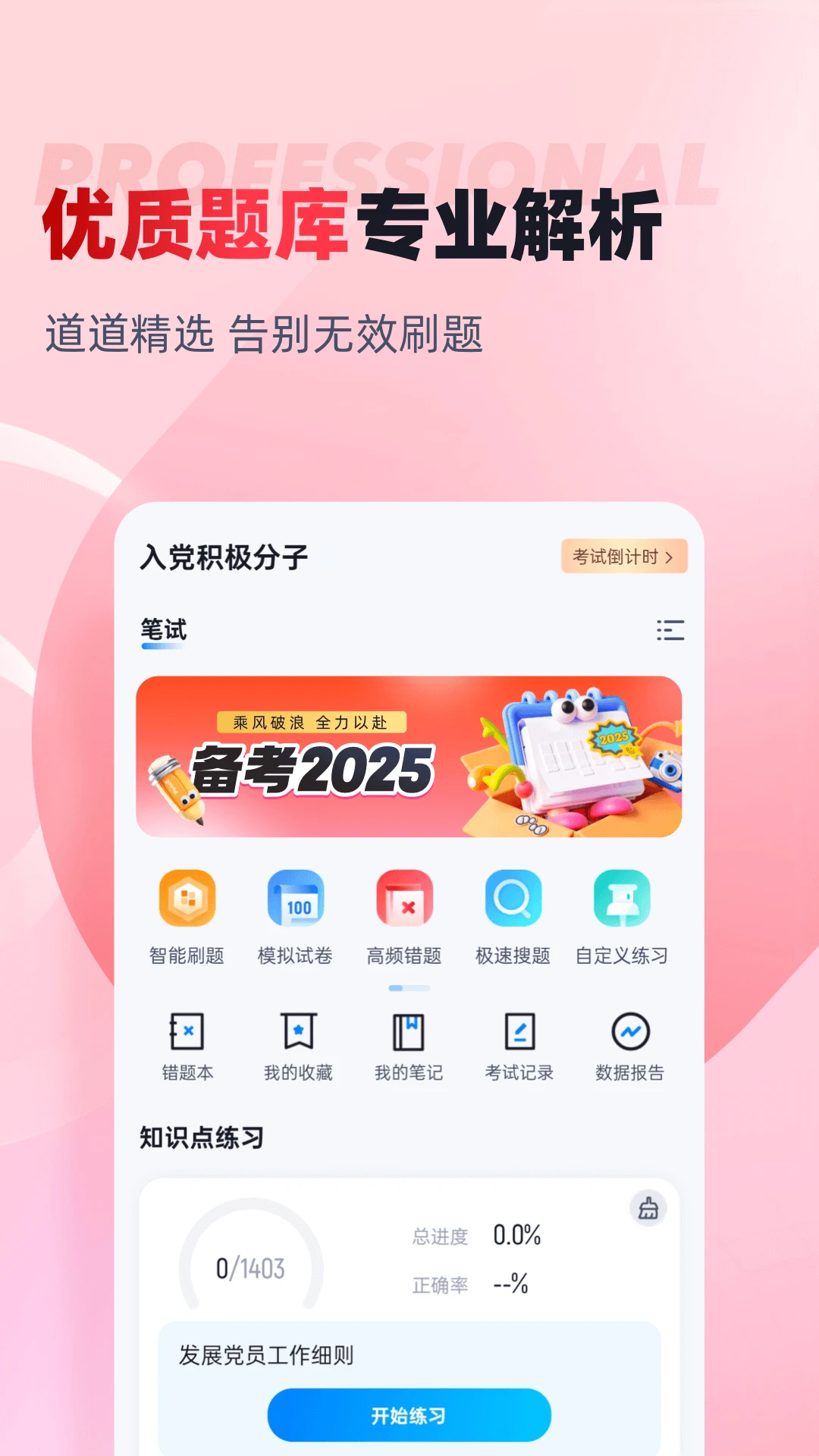 入党积极分子考试聚题库由专业的教育和技术团队联合开发,确保软件功能完善、内容可靠。