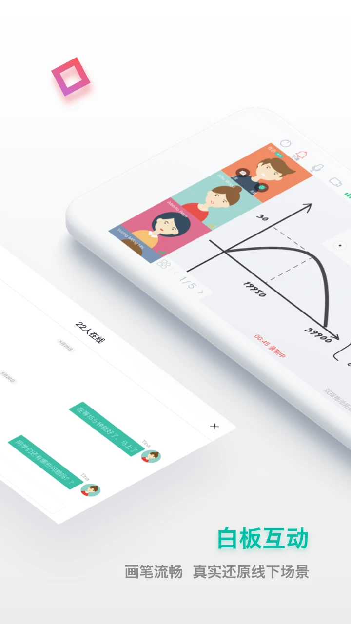 互动讨论书写白板。支持多人同时使用画笔、输入文字、上传图片,支持多页滑动无限使用。随时写随时擦,简单易上手。