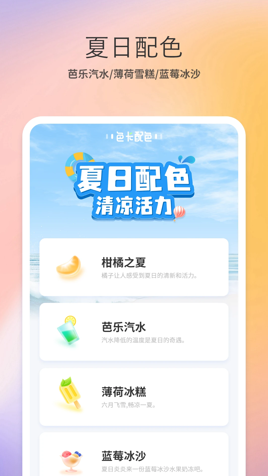 ——经典配色:包含传统色、治愈色、夏日色系。每种色系都包含多种配色组合,是创意调色的得力助手。它网罗大量经典配色方案,从复古风到现代简约风,应有尽有。帮您借此快速敲定契合主题的配色。