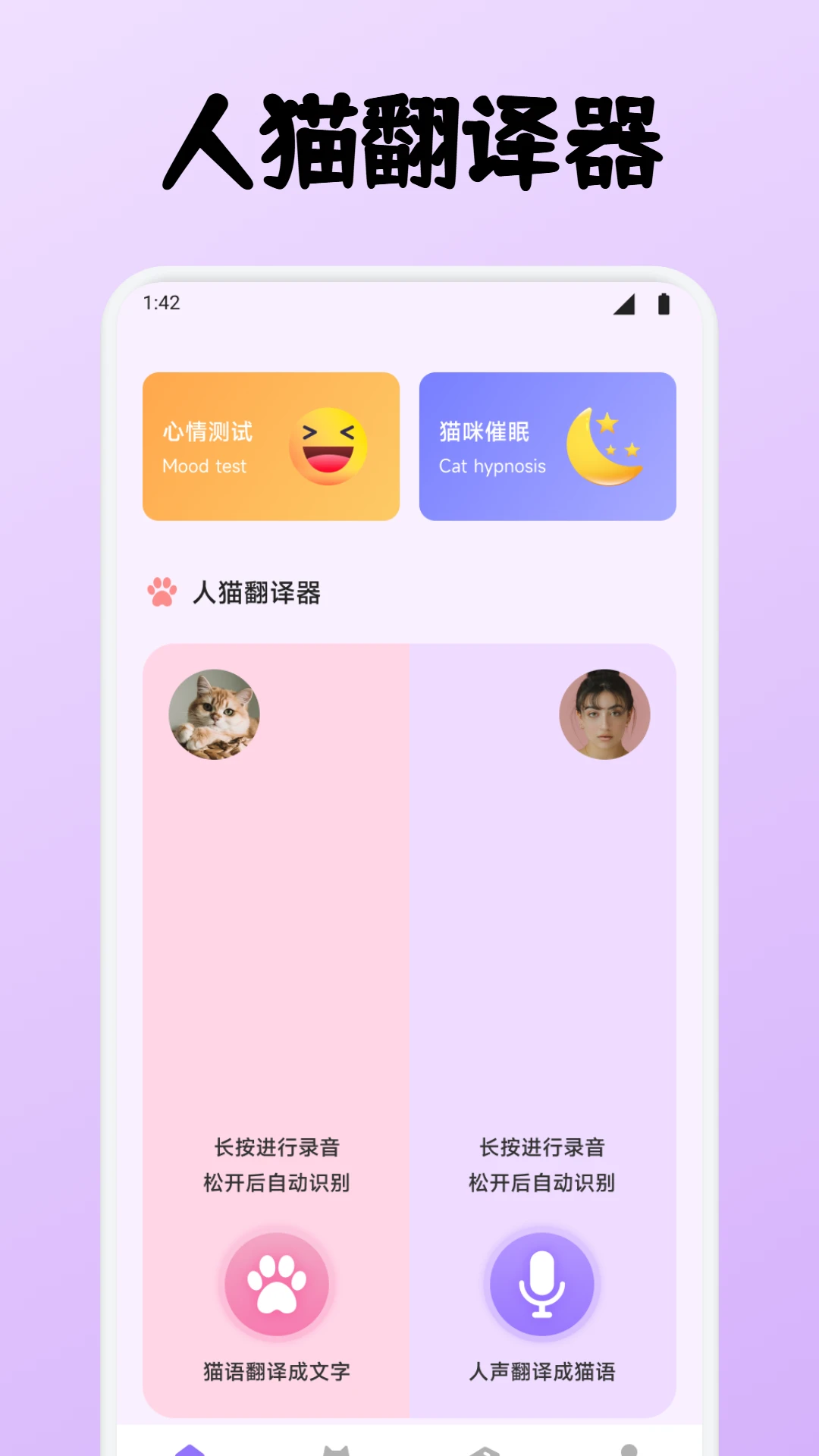 小猫小狗翻译器是一款专为宠物爱好者设计的智能应用,旨在帮助主人更好地理解和沟通自己的爱宠。通过先进的语音识别技术,它能实时翻译猫狗的叫声,解读宠物的情绪和需求。此外,它还提供宠物语言词汇库、健康记录管理、日常日记和相册功能,让主人可以全方位地记录和回顾宠物的成长点滴。无论是想更懂宠物,还是希望留下美好回忆,这款应用都能成为宠物主人的贴心助手。