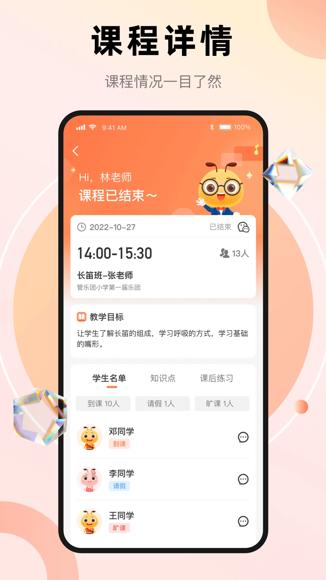 自主练习记录:学生练习时长与内容自动记录,老师可随时查看进度并提供针对性指导。