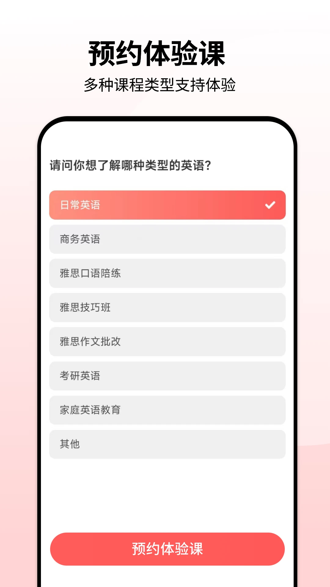 √预约体验课,专属顾问引领学习之旅自助预约同桌口语体验课,享受一对一专属学习顾问服务。顾问将深入了解您的学习目标和能力水平,量身定制专属学习计划,让您的学习之路更加清晰明确,不再迷茫。