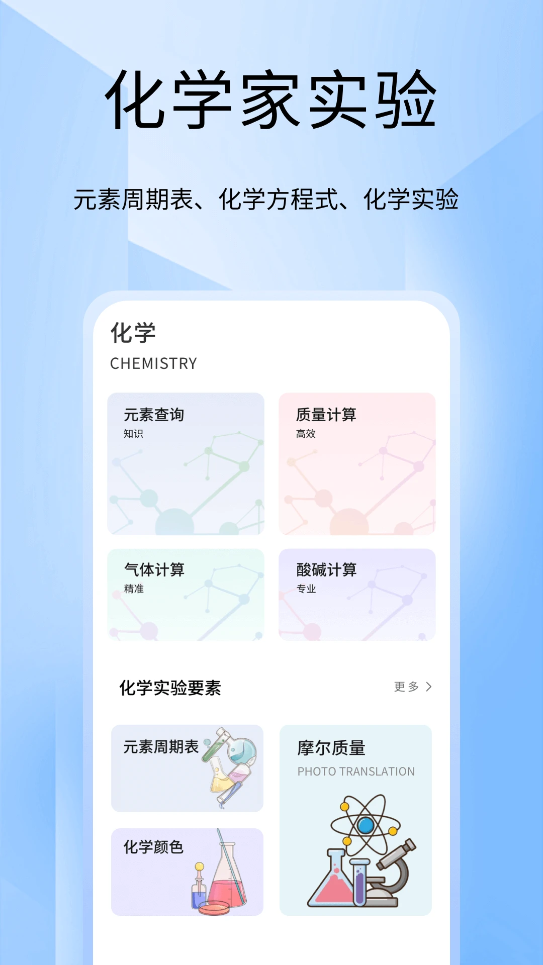 高效学习工具:整合多种功能,帮助用户快速掌握化学知识。