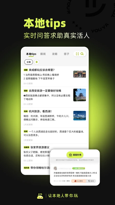 本地Tips功能:旅行者可以直接与本地人交流,获取最真实的旅游咨询,解决旅途中的各种疑问。
