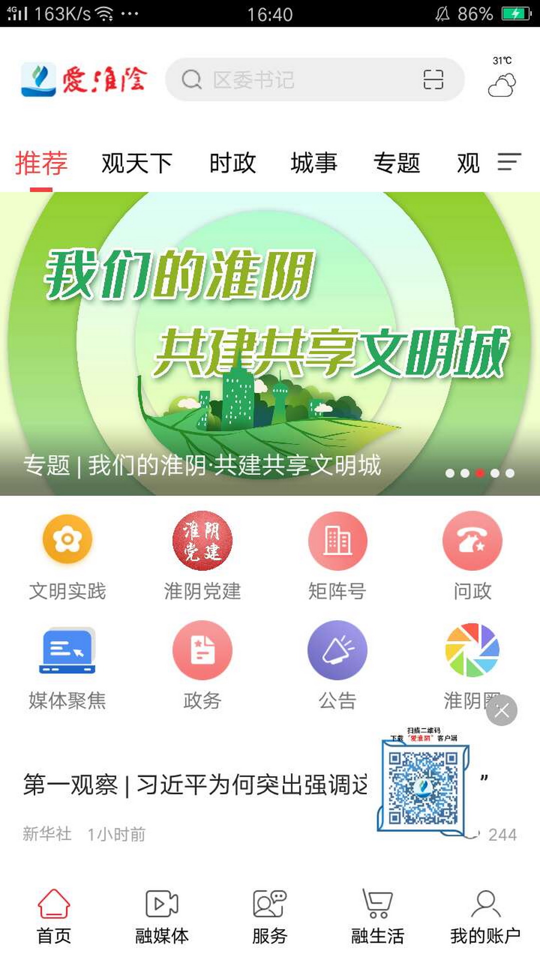 爱淮阴APP是由淮阴区融媒体中心精心打造的一款综合性移动客户端,它整合了新闻资讯、视频直播、政务服务、生活服务、手机问政和互动社区等多项功能,真正实现了"融媒+政务+服务+产业"的创新融合模式。这款应用不仅为用户提供了全方位的资讯服务,还能满足日常生活和政务办理的多样化需求。