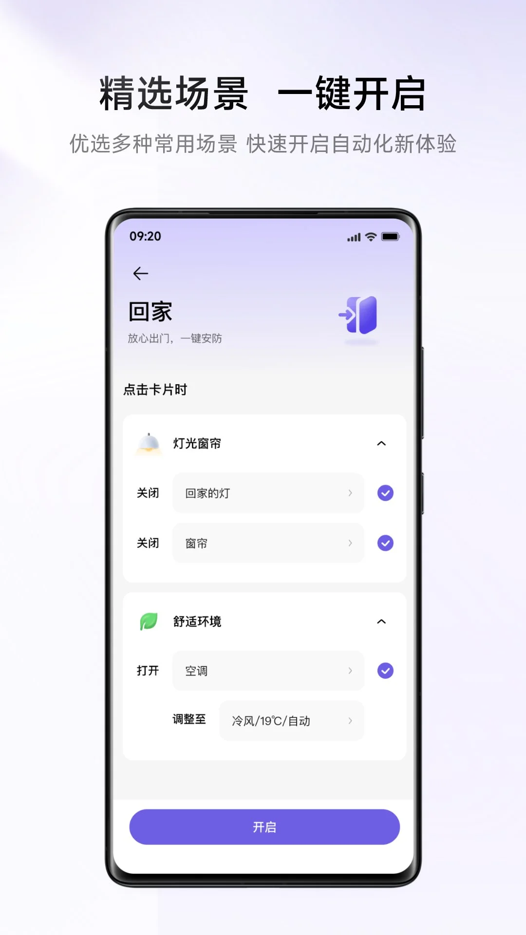 支持多设备联动,例如设置“回家模式”,一键开启灯光、空调等设备,提升生活效率。