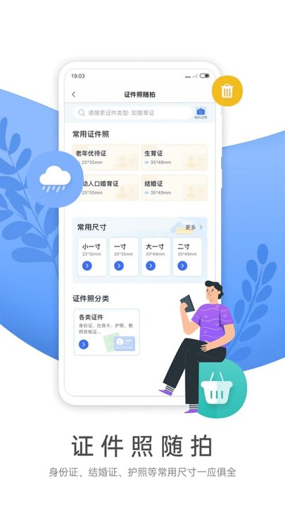 支持身份证、结婚证、护照等多种证件照拍摄,提供专业的美化功能。用户还可以选择不同背景颜色,满足各类证件照需求。