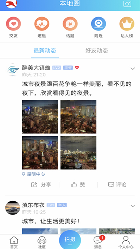 本地圈,分享个人精彩生活,支持图文、短视频等多种形式,记录并展示镇雄人的日常生活点滴