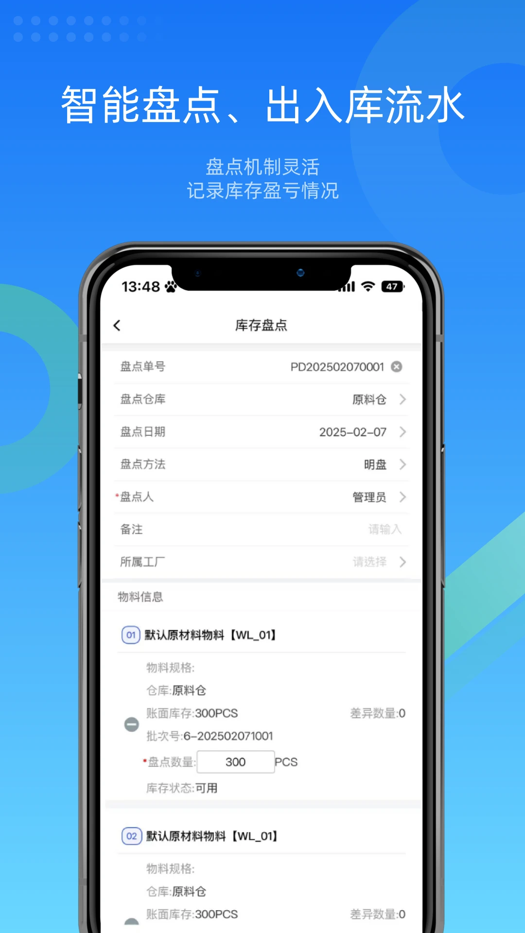 批次追溯功能:记录物料从入库到出库的全生命周期,支持按批次查询历史数据。