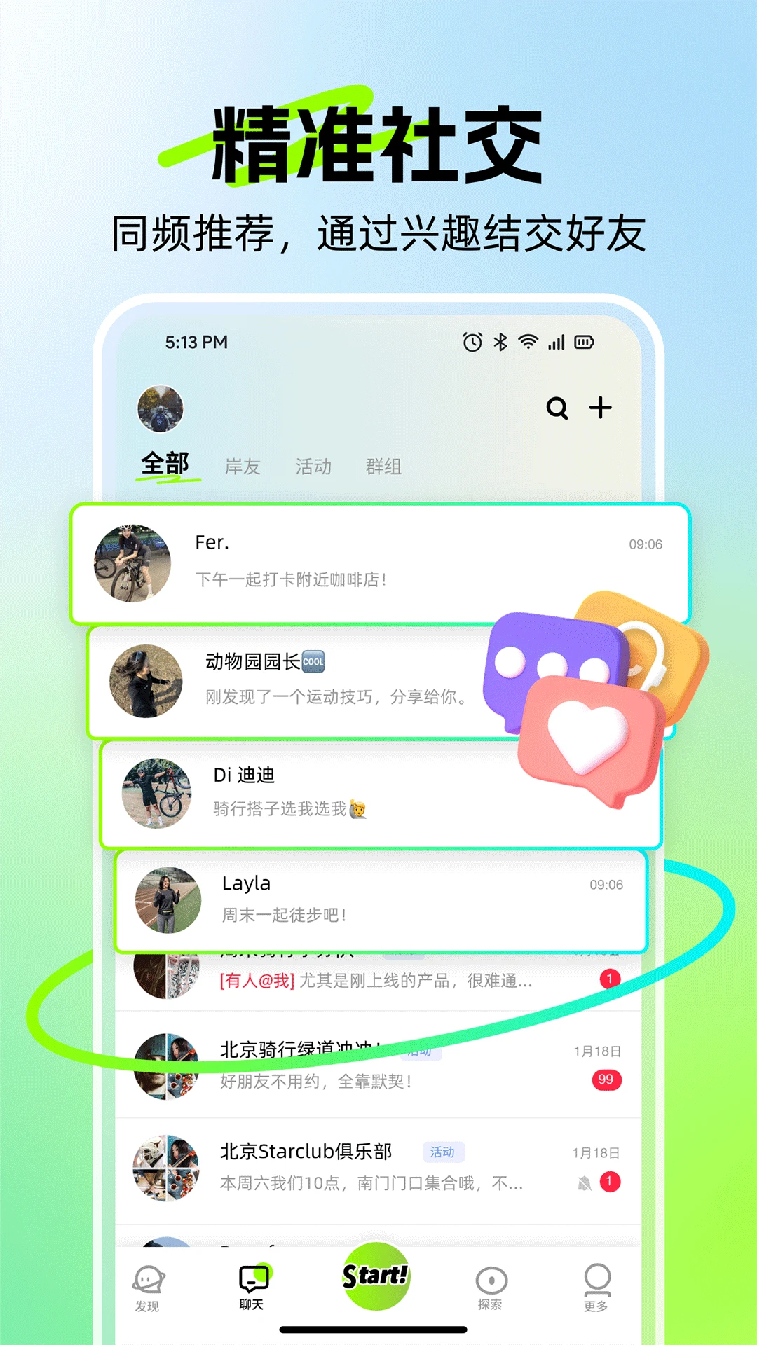 寻找骑行、跑步、台球、棒球、网球等运动搭子,结识同好,加入你感兴趣的同好群组,扩大社交半径。