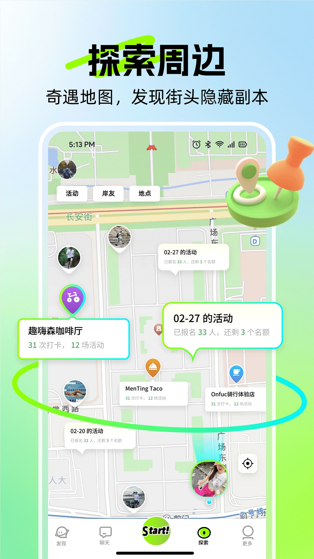 通过地图功能,用户可以轻松发现附近的活动、打卡地和有趣的人,让运动社交更高效。