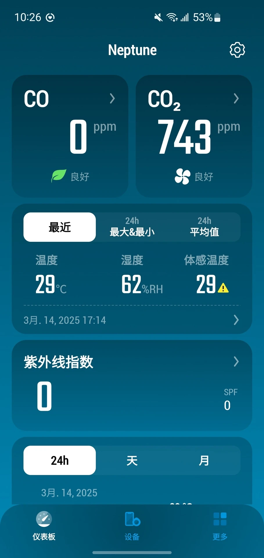 实时四维环境监测:同步采集温度、湿度、二氧化碳和紫外线数据,构建完整的环境画像