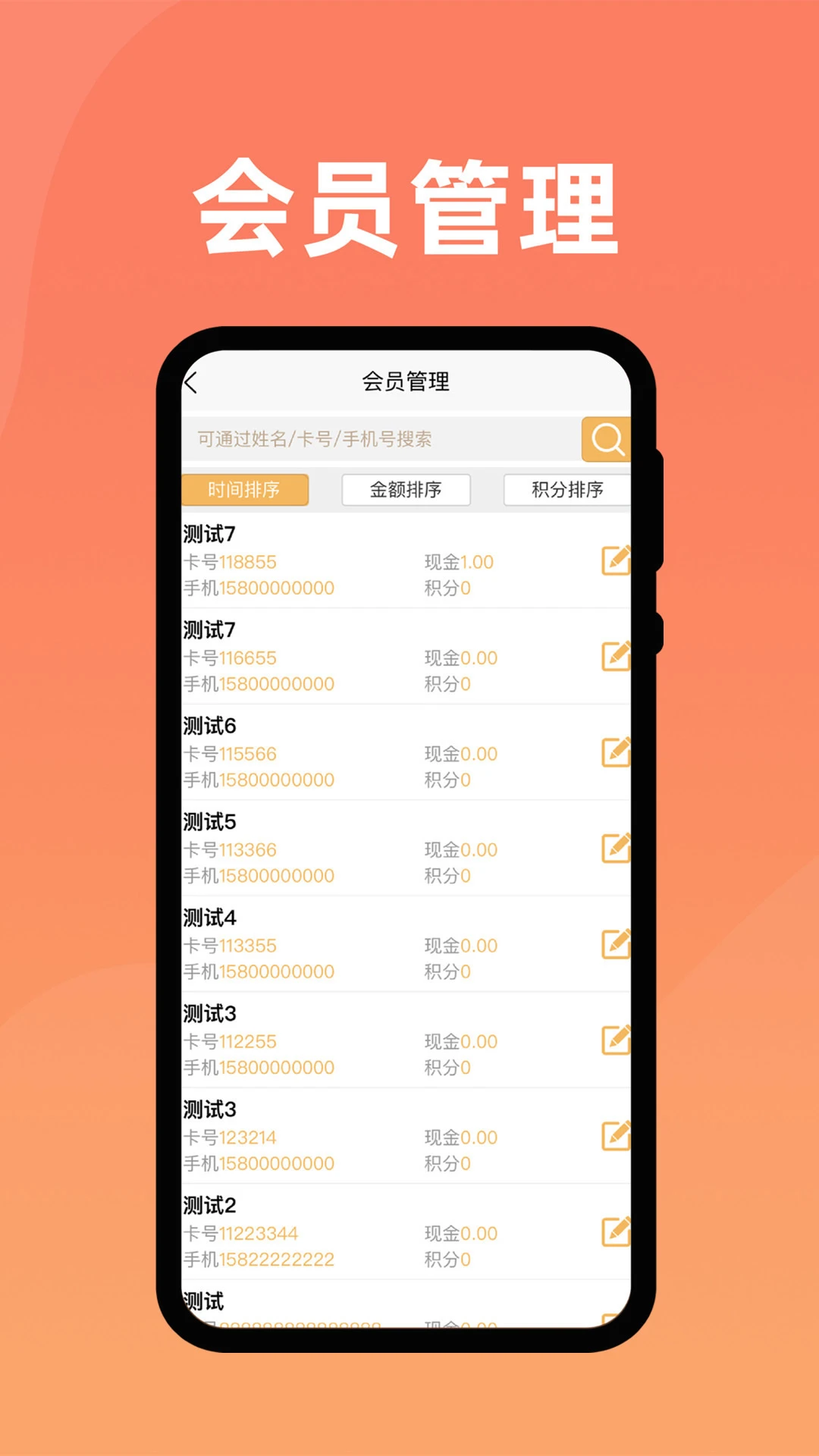 [会员管理超省心]:从注册到消亡,会员档案全生命周期管理!姓名/电话/消费偏好/积分余额一键掌握,支持现金、积分、次卡等多维度消费记录,彻底告别实体卡丢失/补办麻烦,会员信息永久云端存储,换设备也不怕数据丢失。