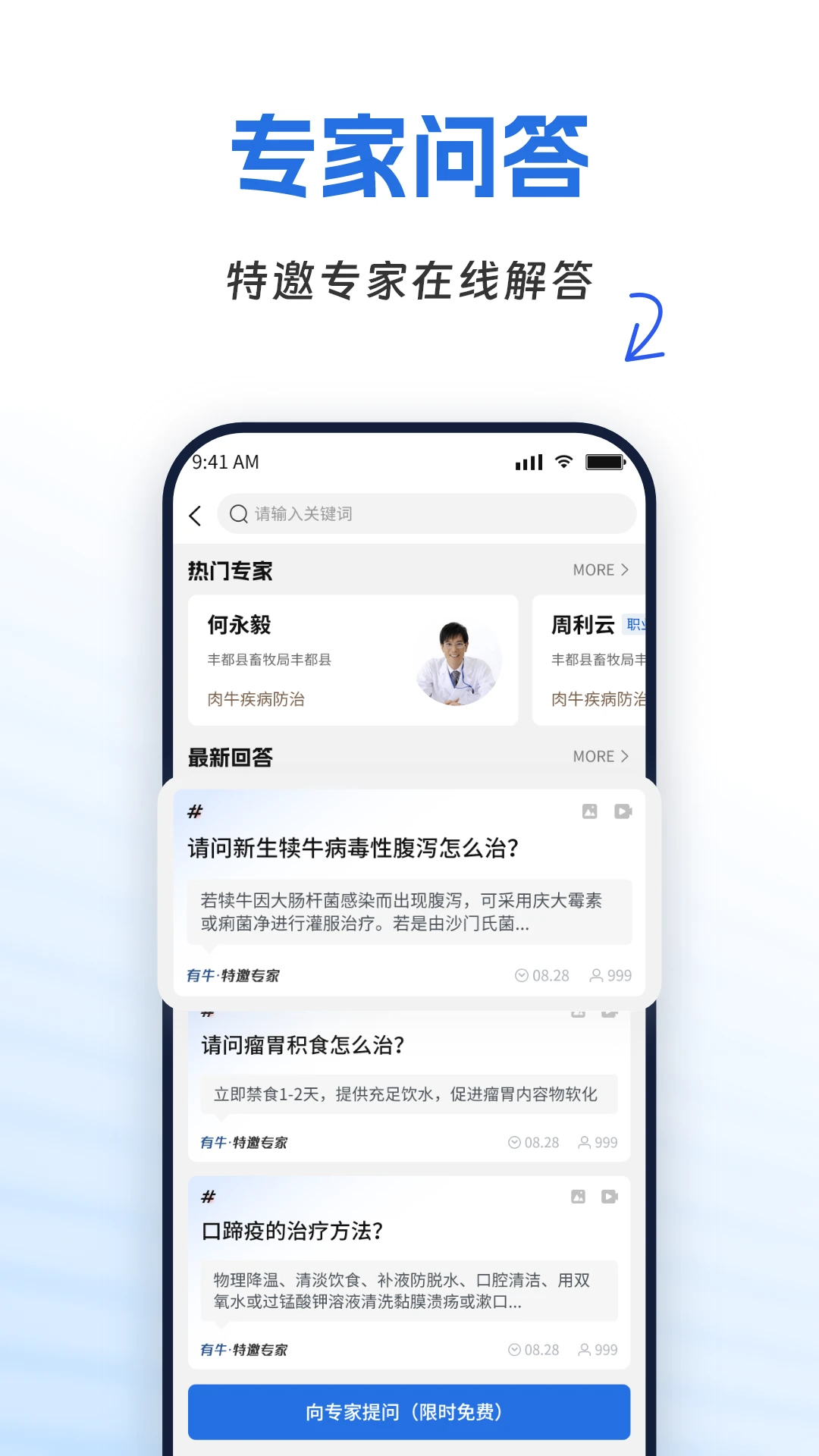 有牛APP为您提供一对一的执业兽医师在线解答,无论您遇到何种肉牛养殖难题,只需打开有牛APP,直接与兽医面对面交流,获得及时的诊疗建议,让您的肉牛及时恢复健康。