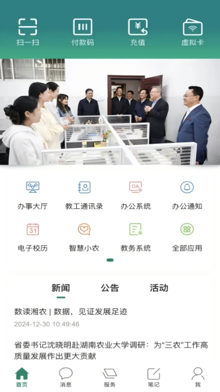 智慧湘农是湖南农业大学官方移动应用,致力于为每位师生提供站式智慧校园移动服务。应用通过整合学校各个业务部门办事服务,充分利用网络与信息技术中心资源优势,提供统一的服务大厅,打破信息壁垒,实现校园数据一体化,为广大师生提供便捷服务,助力学校的教学科研。
