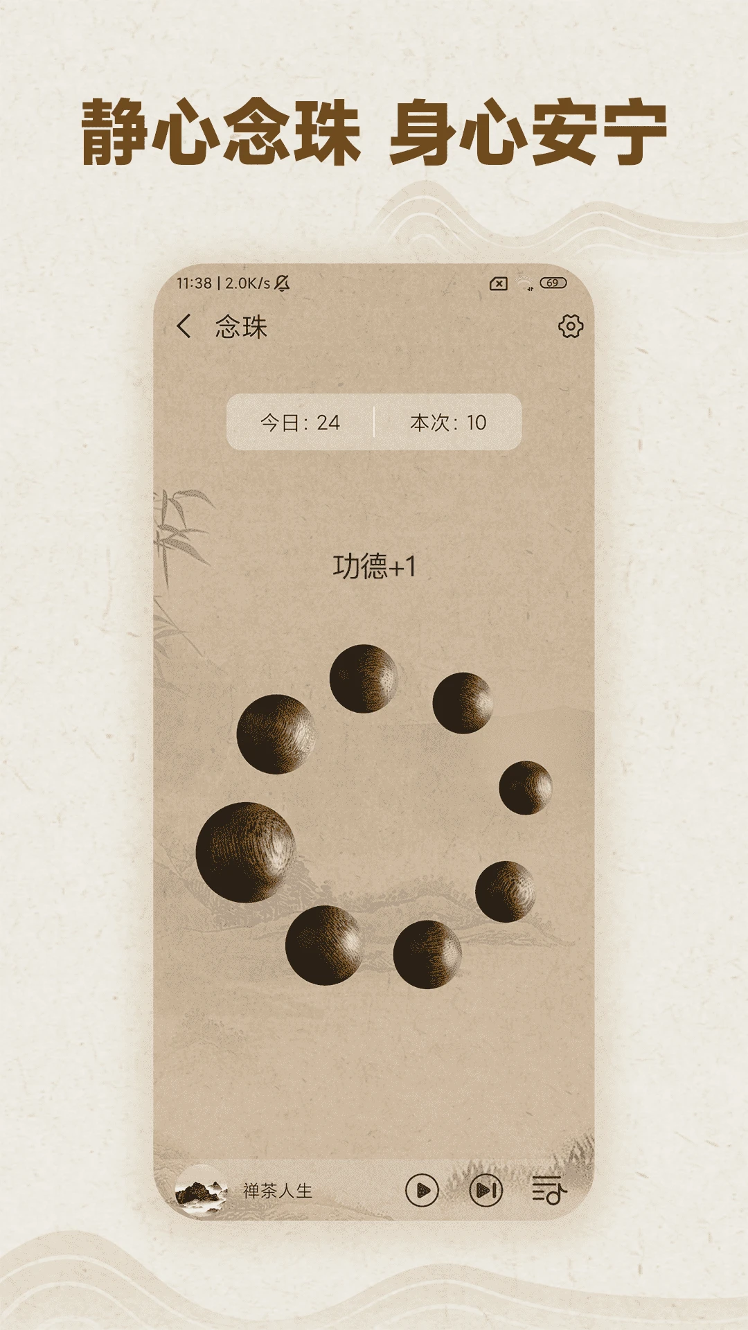 木鱼计数是一款含有正念冥想、木鱼计数、念珠计数、助眠音乐等功能,助你内心安宁的工具软件。