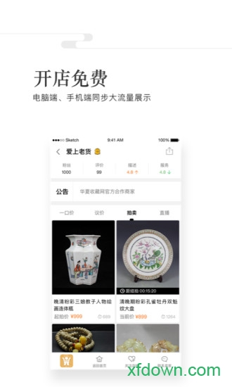 华夏收藏缘起2003年,web端华夏收藏网经过华夏收藏人十多年的坚持和改进,已经成为具备鉴定估价、藏品交易、在线拍卖、收藏文化交流、资讯百科等全方位功能的专业平台。平台累计投入研发资金超过5000万元,打造了业内领先的技术系统。建站以来,已引导近500万位新收藏者走进收藏世界中;目前藏品数量2500万件,创所有收藏类网站之最;活跃用户200万人,用户层次高、粘性强、活跃高。其中藏品鉴定估价、网上交易、在线拍卖三大块位居国内同行之首,特别是在线拍卖等突破了传统模式,与现代信息化产业进行了很好的结合,推动了收藏品行业的发展。