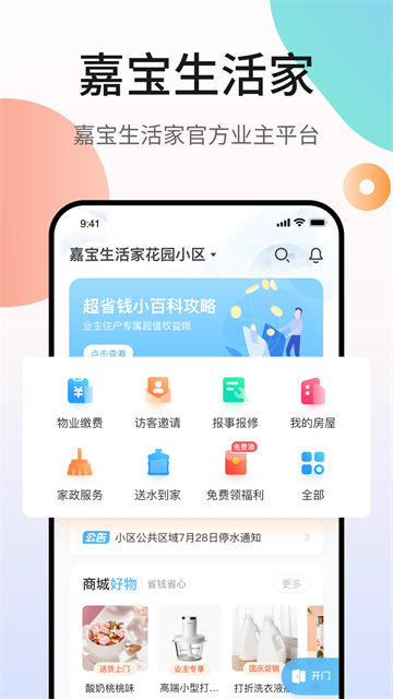 嘉宝生活家app是一款以智慧社区服务为核心的综合性平台,致力于为小区业主打造全方位的生活服务生态圈。作为社区O2O领域的创新产品,它不仅整合了传统物业的基础服务功能,更通过增值服务、邻里社交、本地商圈等模块,构建起完整的社区服务体系,让业主足不出户即可享受便捷高效的现代化生活体验。