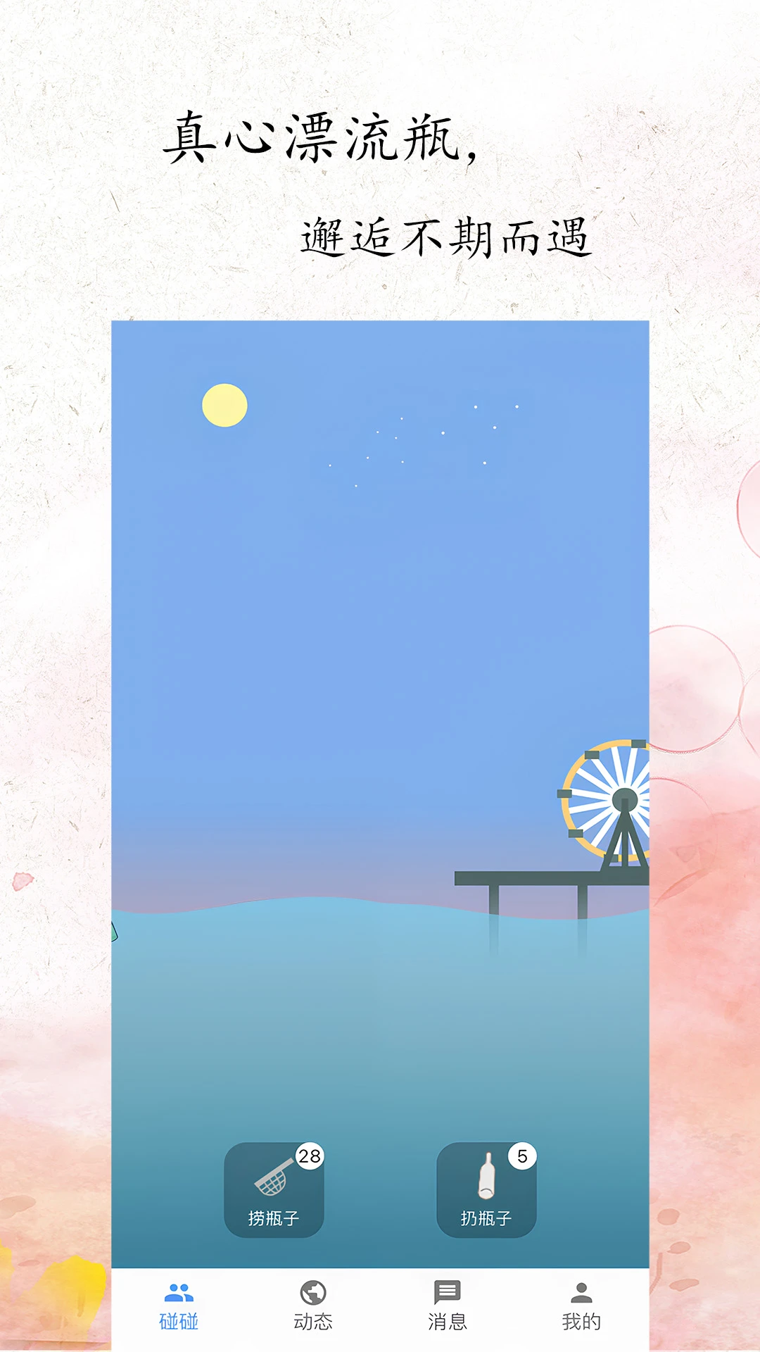 漂流瓶:随机捞取附近用户真心话漂流瓶,神秘邂逅新朋友