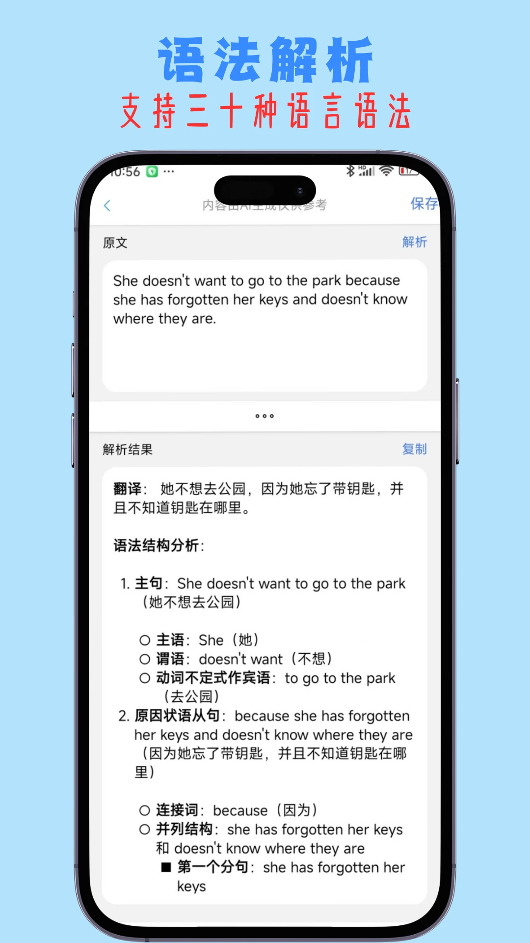 智能解析:一键分析句子语法结构,标注重点知识点,帮助用户深入理解语言规则。