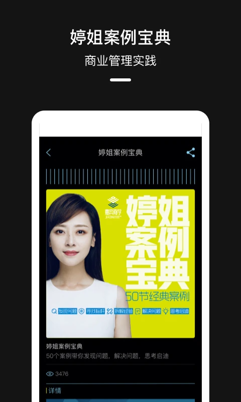 嘉宾商学线上有超过6万分钟的视频素材和鲜活的案例场景,签约了数百位知名教授与企业家导师,年度影响力触达5亿人次。「案例酷」「婷姐案例宝典」是全球创新的视频案例教学产品,让企业中人人都掌握终身受用的商业方法,成为更优秀的经营管理者。