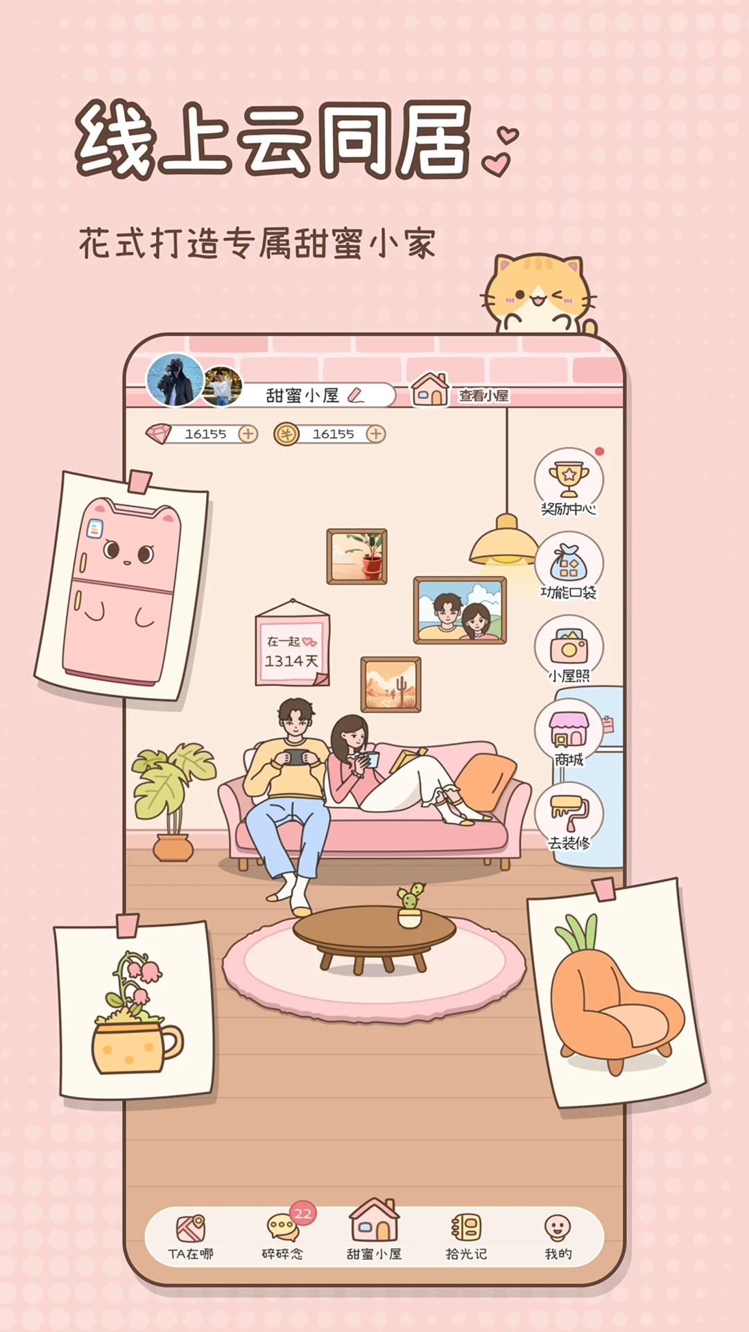 【甜蜜小屋】打造属于情侣的温馨浪漫云小屋,还可以一起装扮情侣空间。