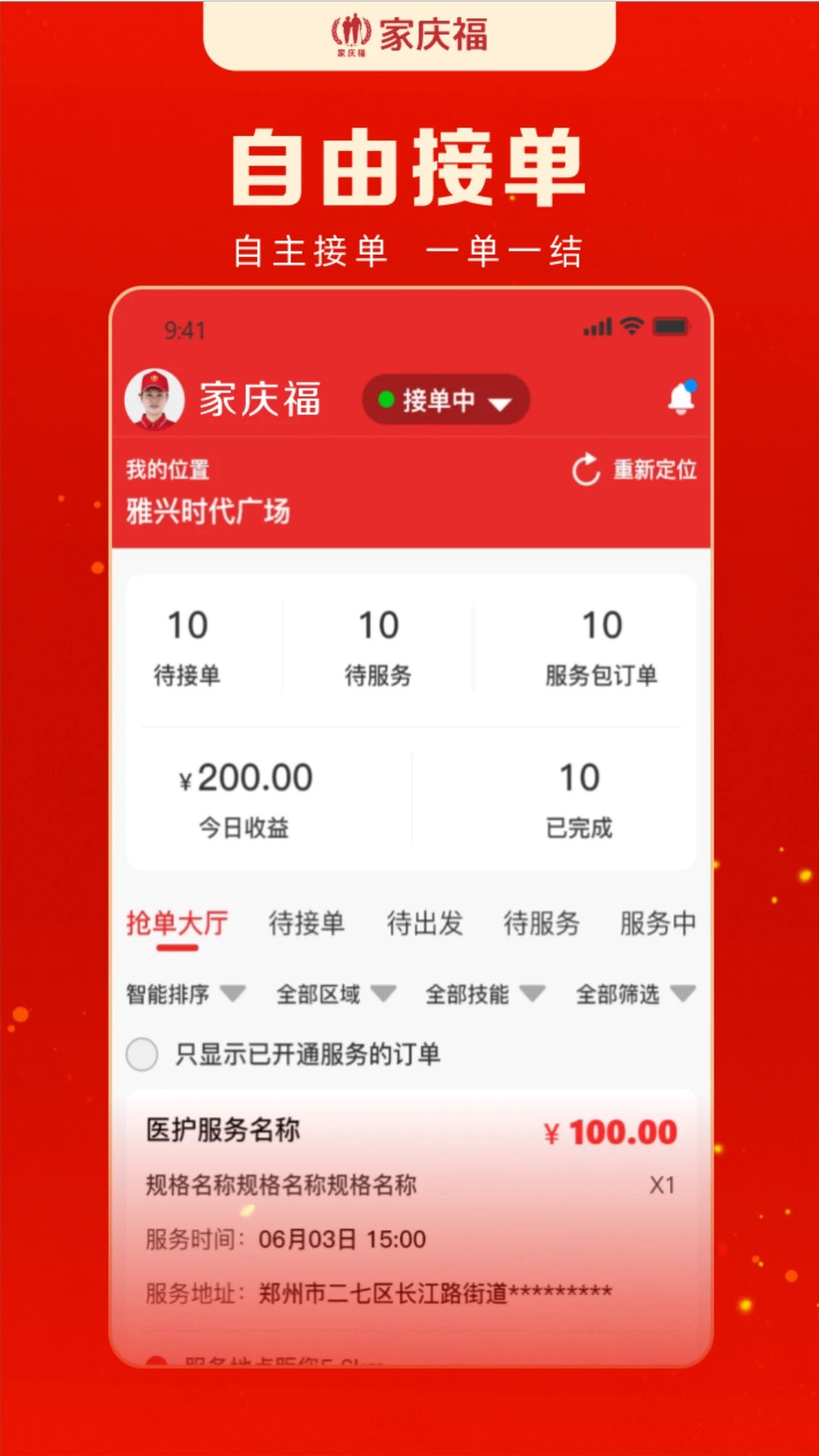 自由接单:服务者可以根据自身时间和距离,自由选择接单模式,工作更灵活。