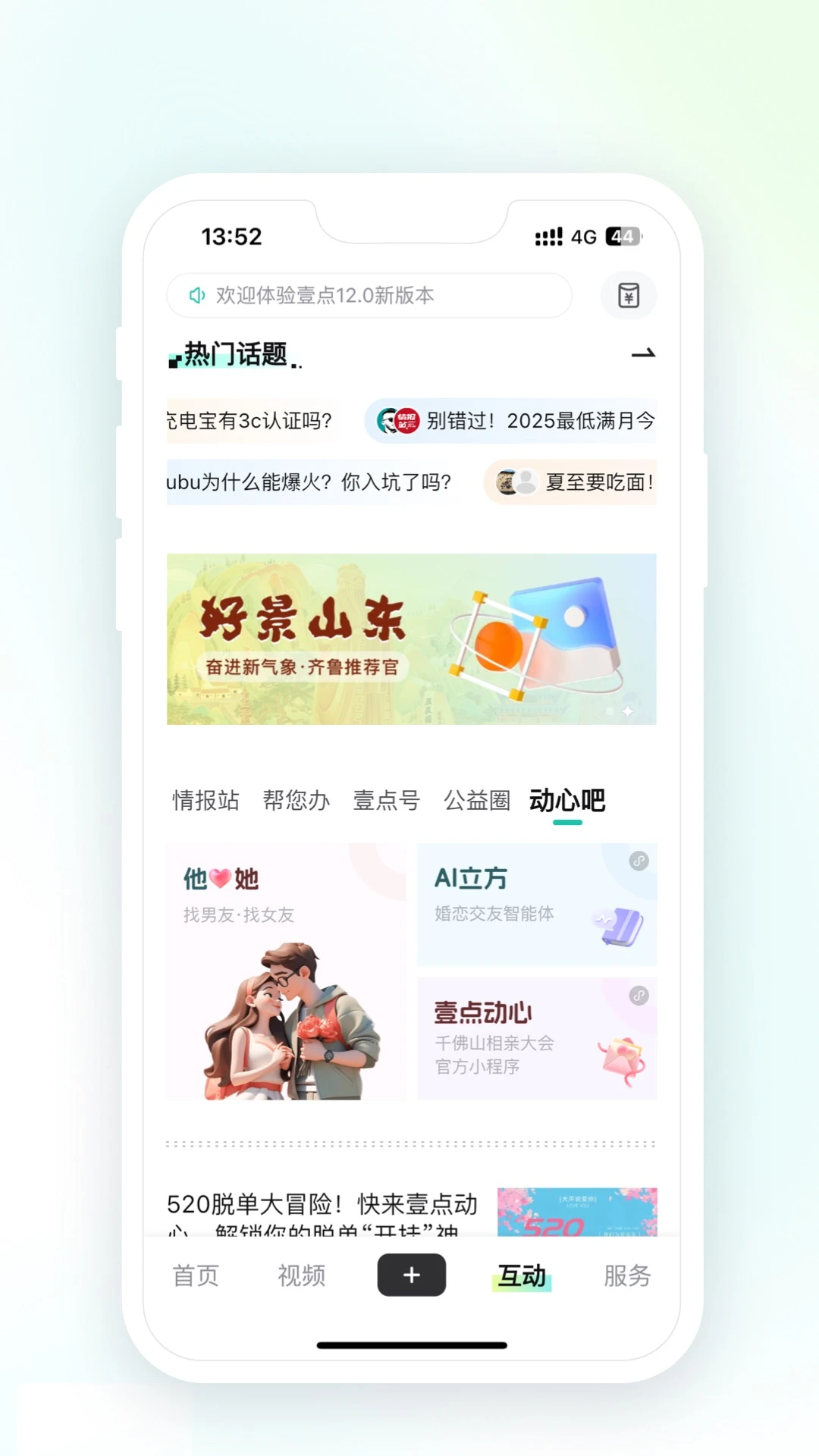 实时新闻推送:基于AI算法实现个性化推荐,第一时间推送山东本地及国内外重大新闻事件。记者直连服务:独创"找记者上壹点"功能模块,用户可直接联系专业记者进行新闻线索提供或问题咨询。